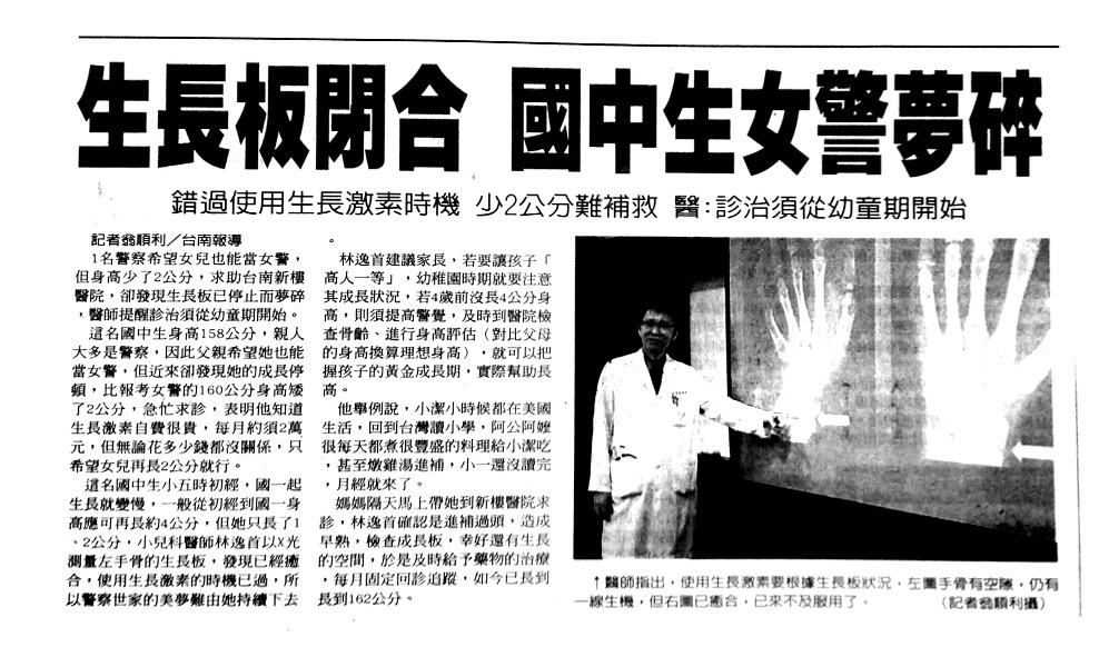 生長板閉合 國中生女警夢碎