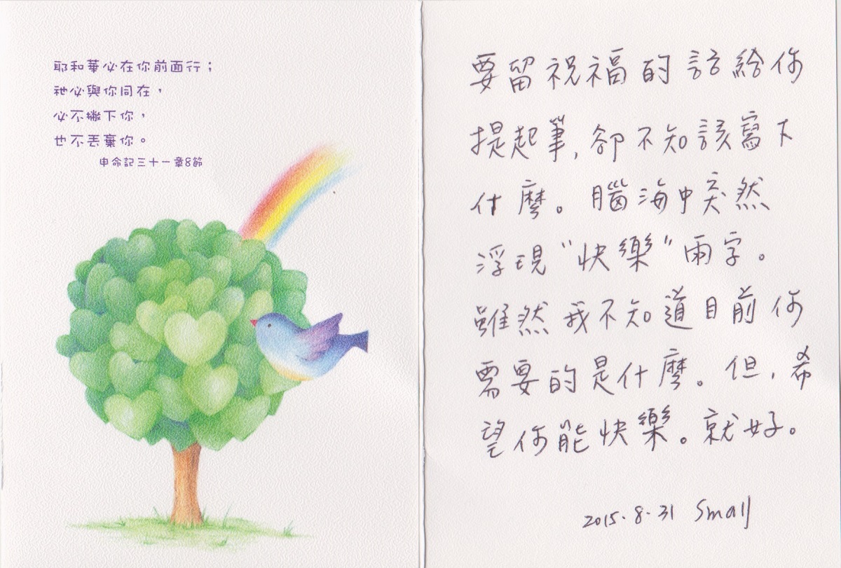 謝謝您的祝福!! 願神守護你和我.